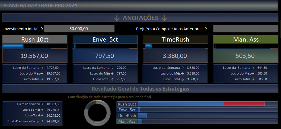 O “Man. Ass” é resultado de operações feitas manualmente com a ajuda do Auxiliar de Investimento. Basicamente, coloco as posições e ele me dá um lucro de 150 pontos ou um prejuízo de até 150 pontos.